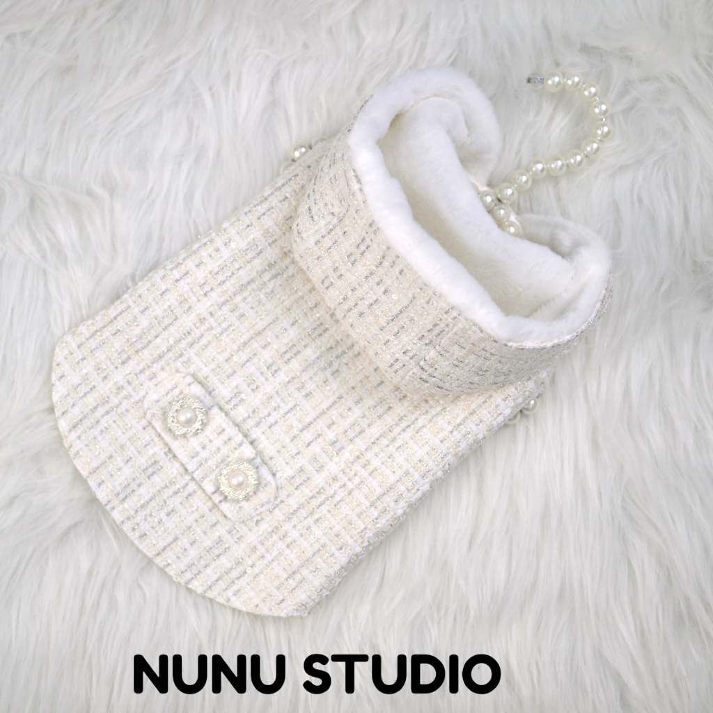 Silvery white tweed fabrics coat (with hood)