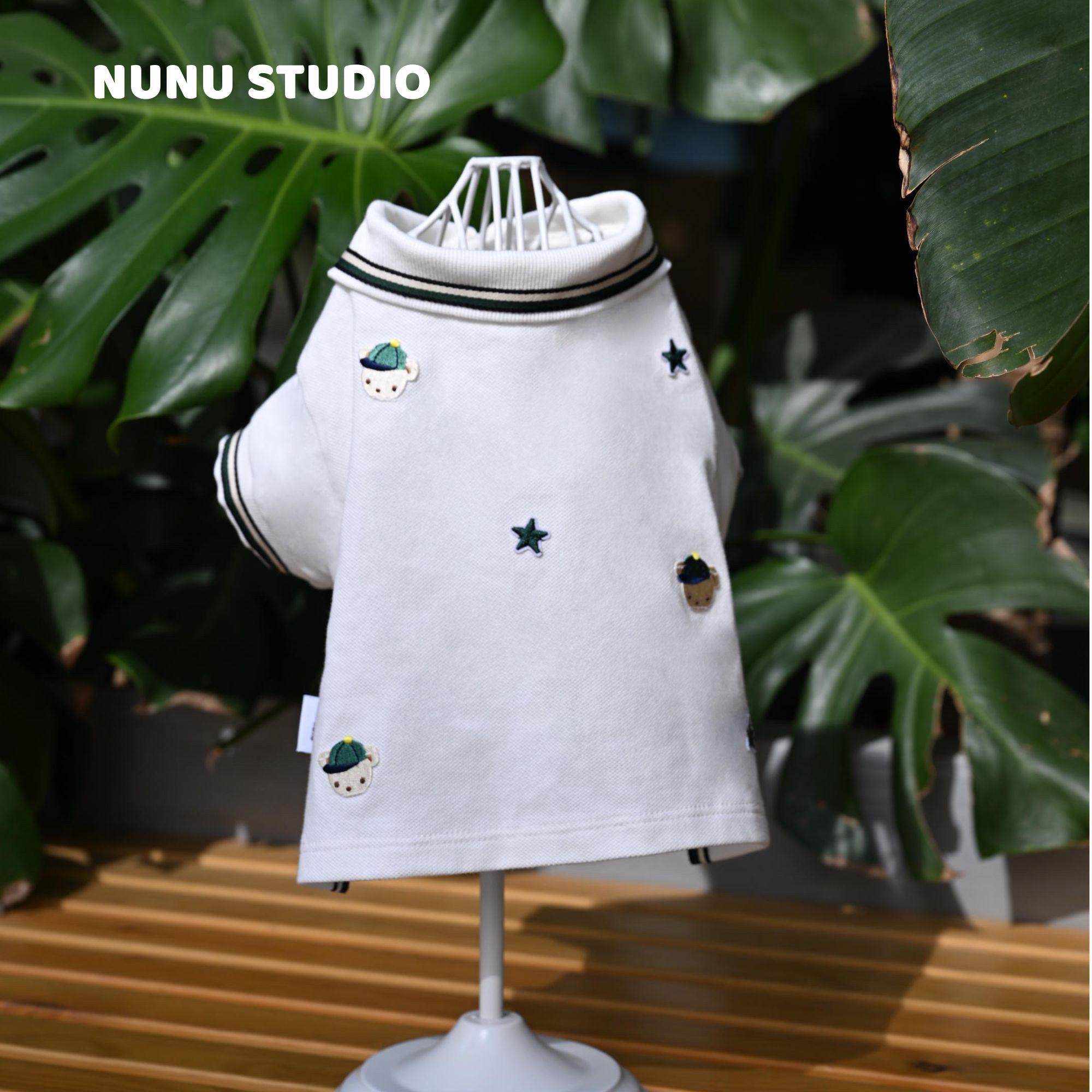 Pet Dog Polo Shirts - Breathable Cotton Shirt - White and Green, Summer Pullover - Button Up Collar Polo for Small Dogs