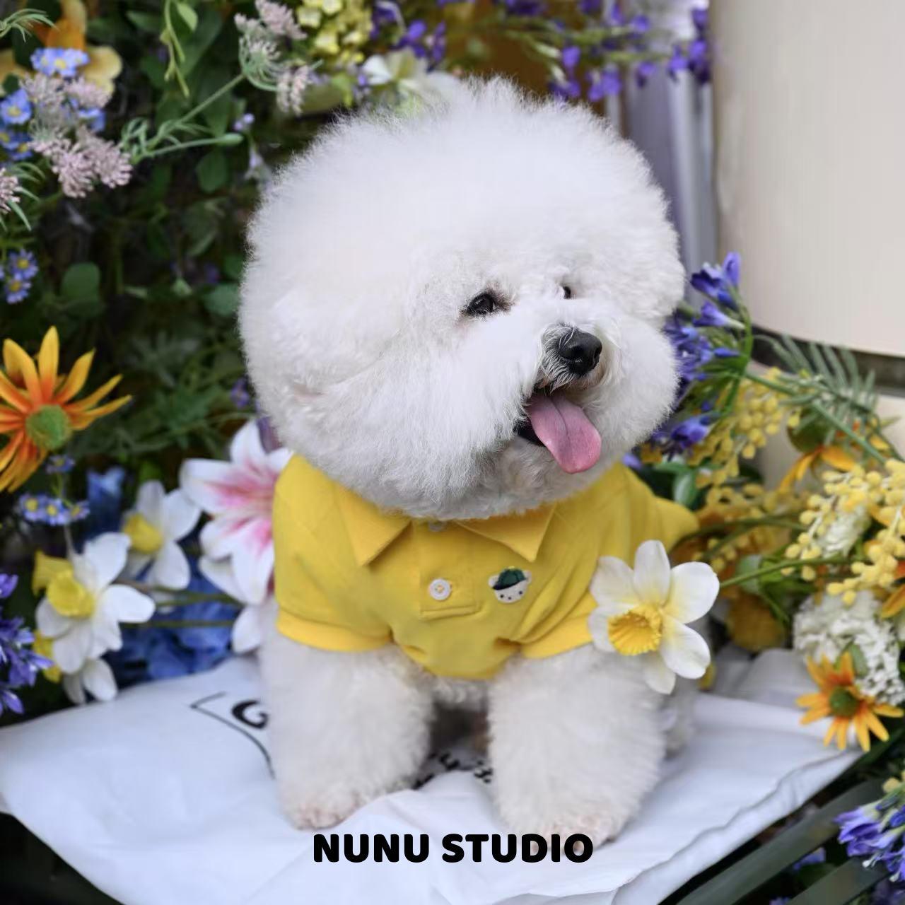 Pet Dog Polo Shirts - Breathable Cotton Shirt - Solid Yellow, Summer Pullover - Button Up Collar Polo for Small Dogs